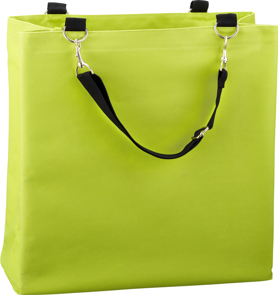 600D Polyester. Huge main compartment with large storage space for beach equipment or purchases, zipper pocket for seperate valuables, smartphone pocket and bottle bag, adjustable straps with sturdy snap hook for fastening e. g. at parasol.