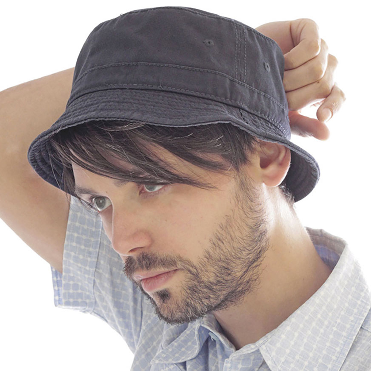 Revisited in the form, with its re-proportioned and more sloping brim, this fisherman model has also wanted to renounce to the metal eyelets to present itself in its essential shape,, that does not fear the wear and tear of time, and of washes.BUCKET SHAPE, Cotton, STITCHED EYELETS, GARMENT WASHED100% CHINO COTTON