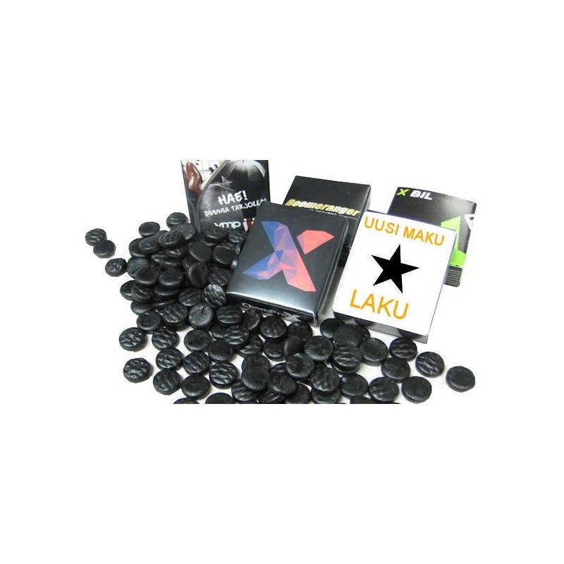 Maku vaihtoehdot: hedelmäsekoitus, salmiakki, lakritsi ja hedelmä-salmiakki sekoitus