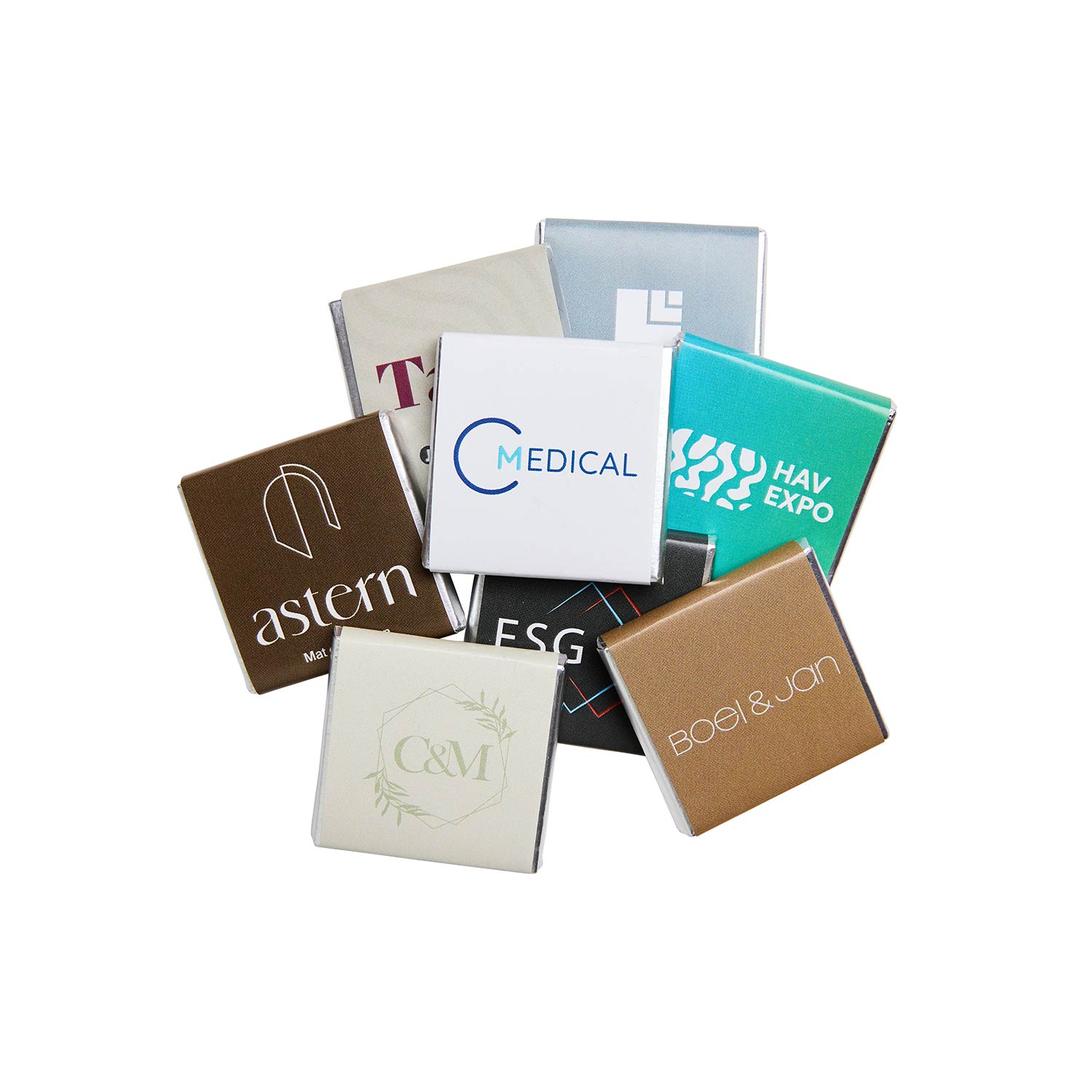 Quatre Neapoletane chocolates are delicious advertising chocolates for many purposes. Available in 4 different delicious flavors: Dark 58%, Milk 35%, Caramel 35%, Dark 70%.The shelf life of the products is about 12 months. Customization for wrapping paper with digital 4-color printing.