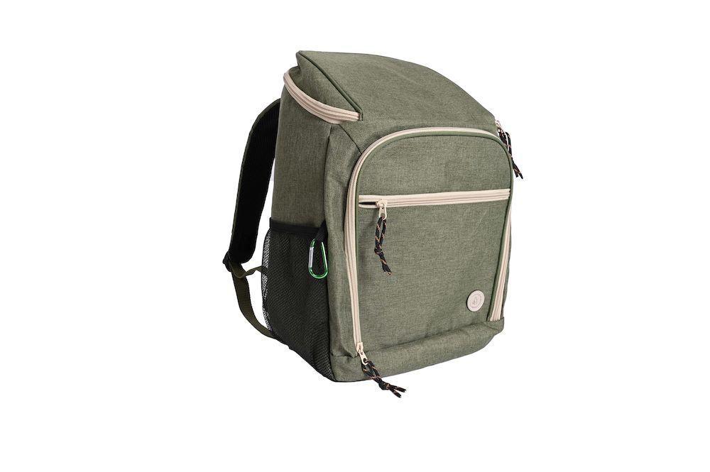 A real luxurious and sporty cooling backpack in green rPET material in Sagaform’s series City rPET. The backpack has many new and great details making it still more useable in woods and field. Two outside pockets, net pocket on the sides, carbine hook to hold a cup or other things, inside straps, enhanced back part and adjustable shoulder straps. Zippers and ribbed strings are stylish contrast coloured details. It has never been easier to carry refrigerated goods. Holds 21 liters. Fabrics rPET/polyester/PEVA Weight 0,475kg Measurement 30x19x44cm 21l