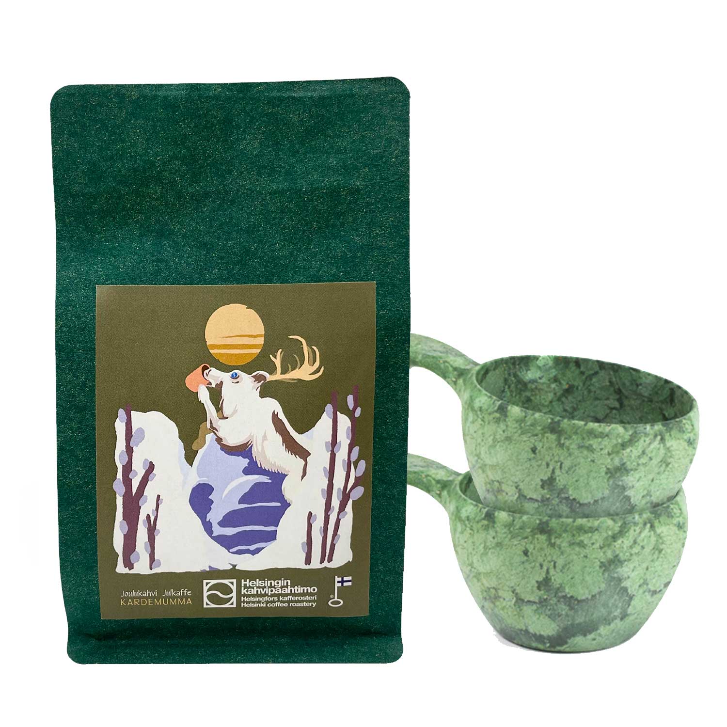 Light, dark and cardamom. Lovely Christmas sets, tone on tone. The beautiful Helsingin Kahvipaahtimo's Christmas product packaging is the perfect product for a gift, and the best thing is that the coffee is also first-class and always fresh. In addition to coffee, the set also includes two Kupilka drinking vessels in the color of your choice. It is also possible to get a stylish logo marking on Kupilka drinking vessels as laser engraving, ask for a quote. The gift set includes a suitable gift box.