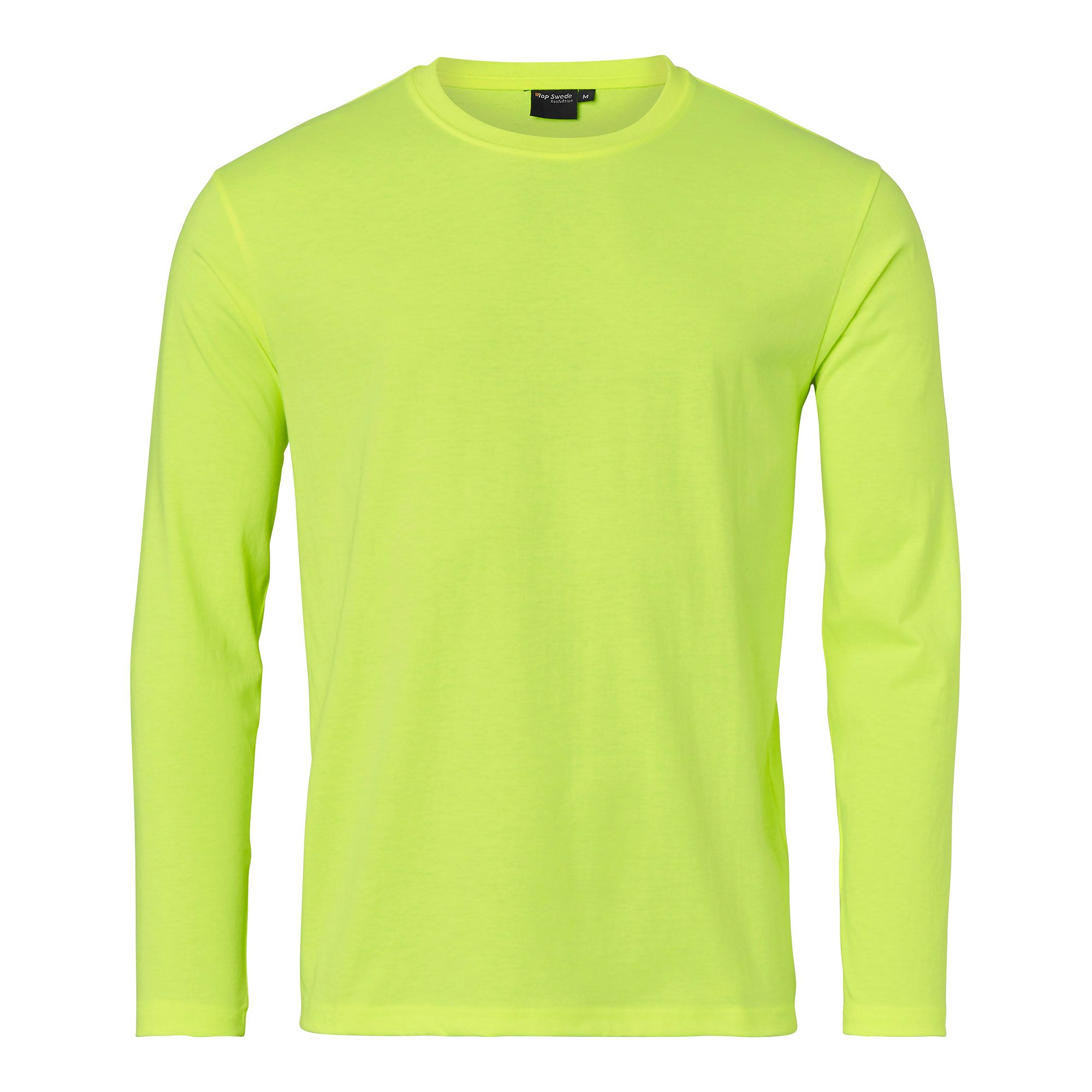 Classic long-sleeved T-shirt. Double elastane neckline.