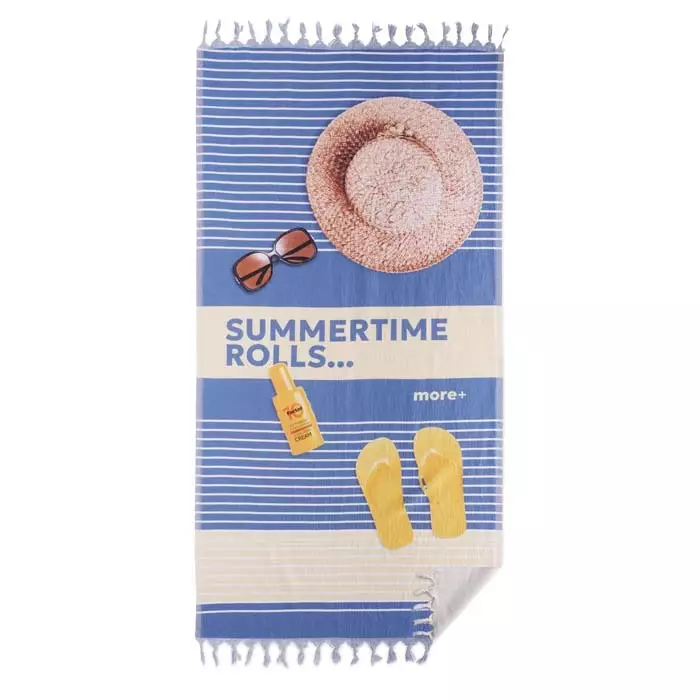 Suositut hamam-pyyhkeet ovat nyt saatavilla myös täysvärisellä designilla, joka antaa vielä enemmän mahdollisuuksia kustomointiin. Taustapuoli on valmistettu 100 % ecrunvärisestä puuvillasta. Etupuoli on polyesteriä, ja siihen on sublimoitu sinun designisi. Pyyhkeessä on noin 8cm pitkät solmittavat hapsut.