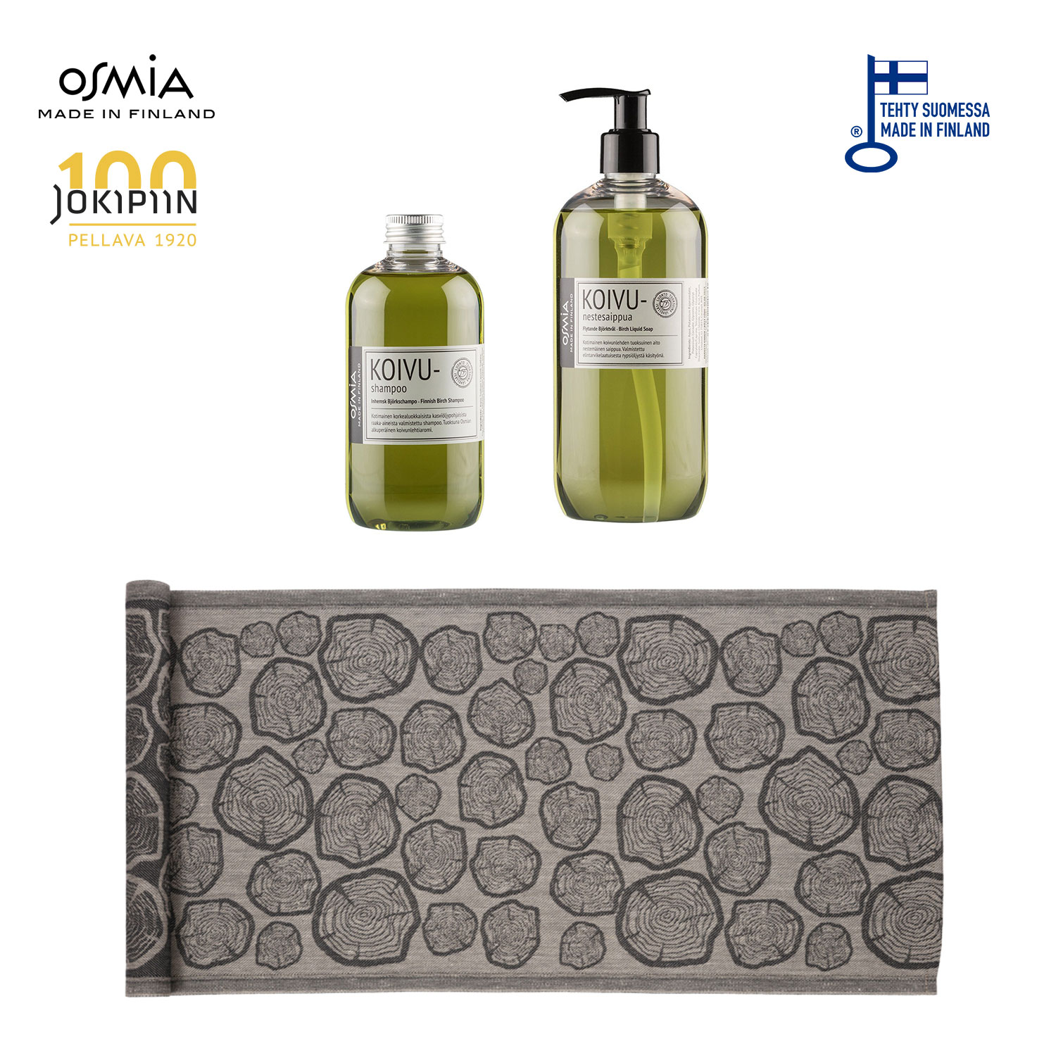 - Osmian kotimainen shampoo ja nestesaippua yhdistettynä Jokipiin Pellavan Suomessa valmistettuun laudeliinaan sopii jokaiselle saunojalle. Setti tulee varmasti käyttöön joko kotona tai vaikkapa mökkisaunassa. 51,00 € alv. 0%