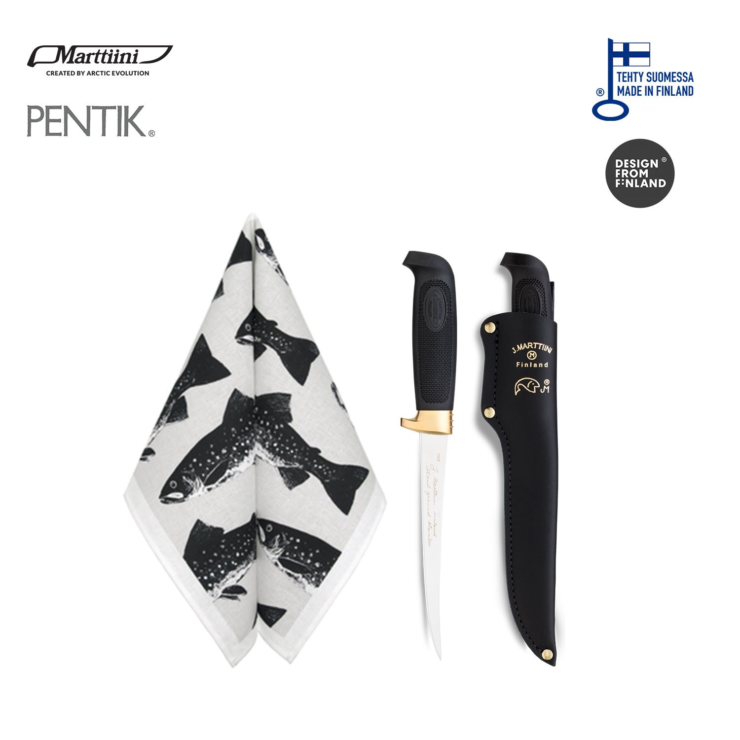 - Marttiini -fileointiveitsi on mahtava valinta kalamiehelle tai kalaruoista nauttivalle. Yhdistämällä Pentik Rautu -keittiöpyyhkeen saat kauniin lahjapaketin jouluksi. 44,00 € alv. 0%