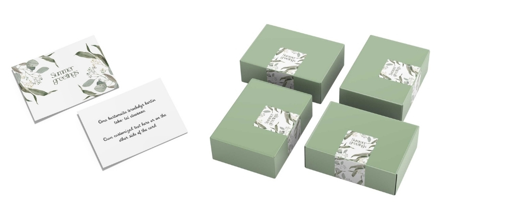 Kesän tervehdyskortti ja pakkauslaatikot sopivat jokaiseen makuun