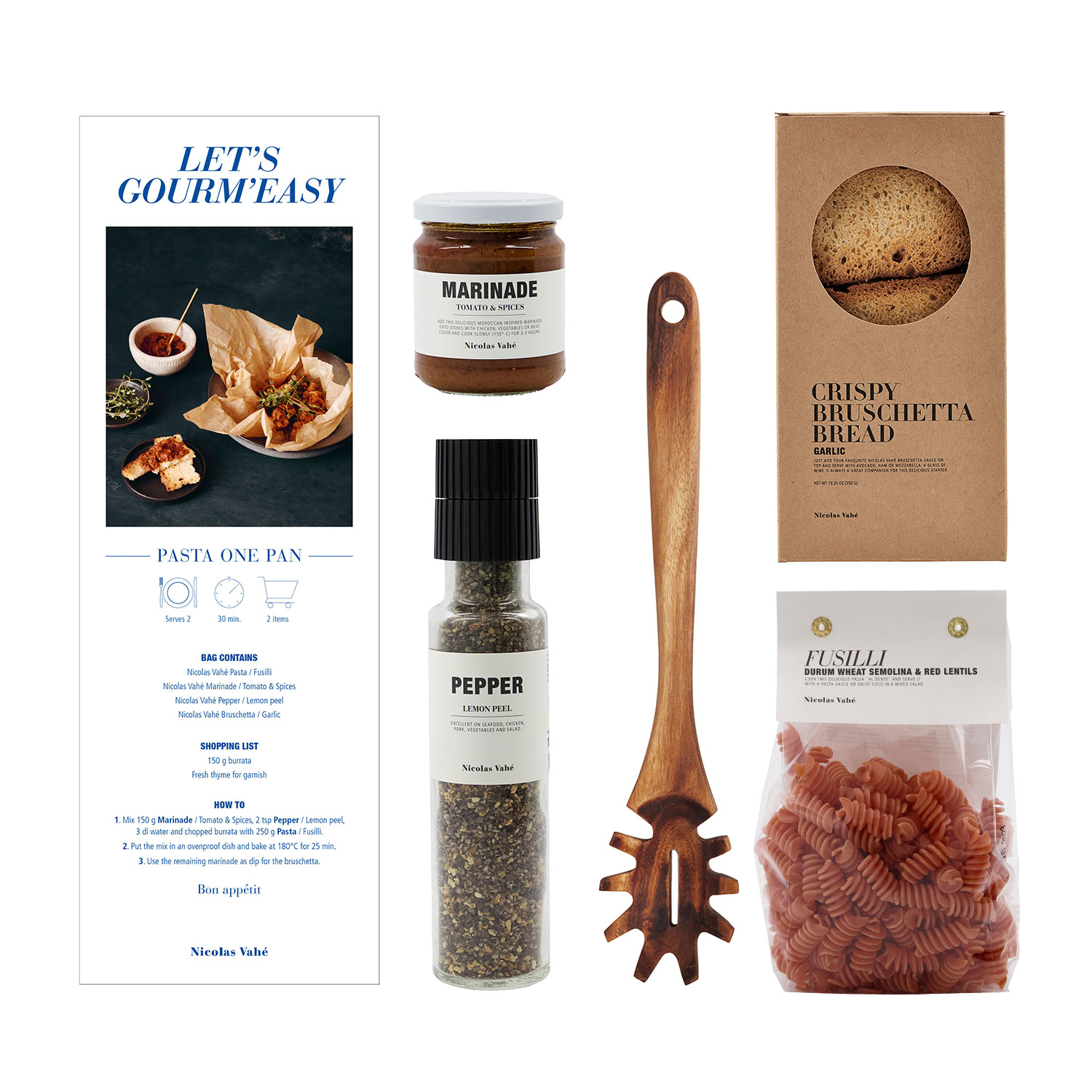 Anna asiakkaallesi tai henkilökunnallesi helppo gourmet -kokemus Nicolas Vahén kehittämän Gourmeasy -setin reseptillä. Kotikokin herkullinen pastasetti sisältää kaiken tarvittavan; helpon pastareseptin sekä reseptissä käytetyt Nicolas Vahé -tuotteet.