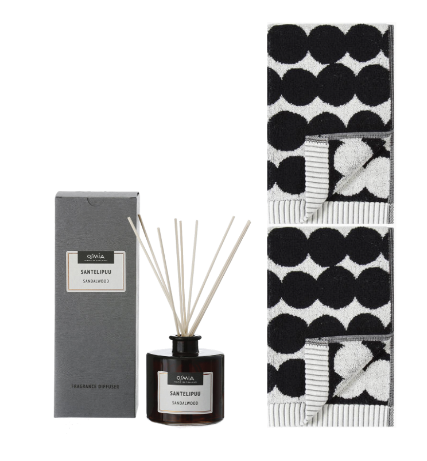 Marimekon kauniit pienet 30x50cm Räsymatto- vieraspyyhkeet sopivat jokaiseen kotiin. Osmian itse Suomessa kehittämät huonetuoksut tuovat tunnelmaa ja välittävät pohjoisen luonnon tuoksumaailmaa... Lue lisää