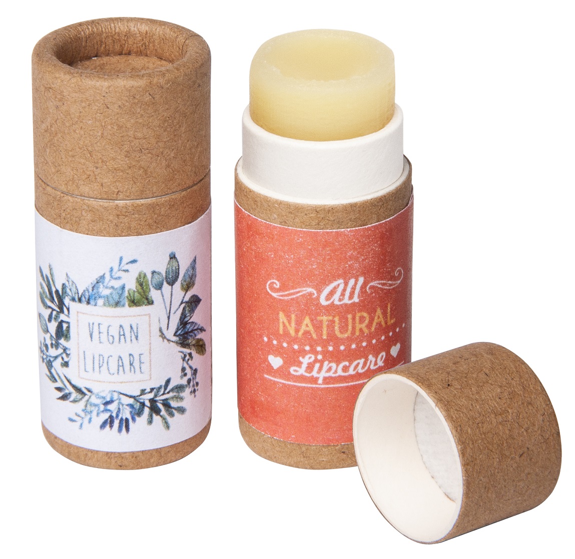 Huulivoide ekologisessa pakkauksessa, joka on valmistettu FSC-sertifioidusta pahvista. Tämä ympäristöystävällinen, vegaaninen huulivoideputki ei sisällä muovia ja on kompostoitavissa.