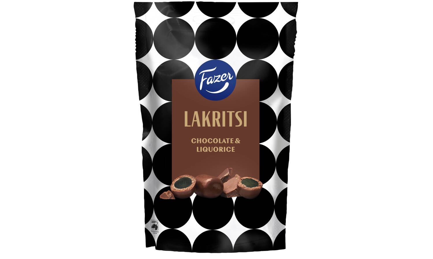 Fazerin ihanan pehmeät lakritsit ovat kuorrutettu Fazerin sinisellä suklaalla, joka takaa vastustamattoman maun. Pussin kaunis design tekee lahjasta tyylikkään ja toimii hienosti esimerkiksi Marimekon tuotteiden kanssa tai yhdistettynä muihin tuotteisiin liikelahjana.