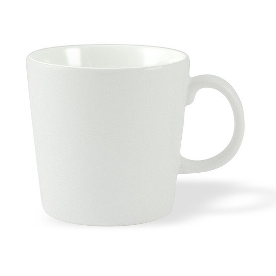 Suosittu kahvimuki värjätyllä kiiltävällä sisäpinnalla. Paljon värejä. Valitse yrityksesi värimaailmaan sopiva vaihtoehto.
