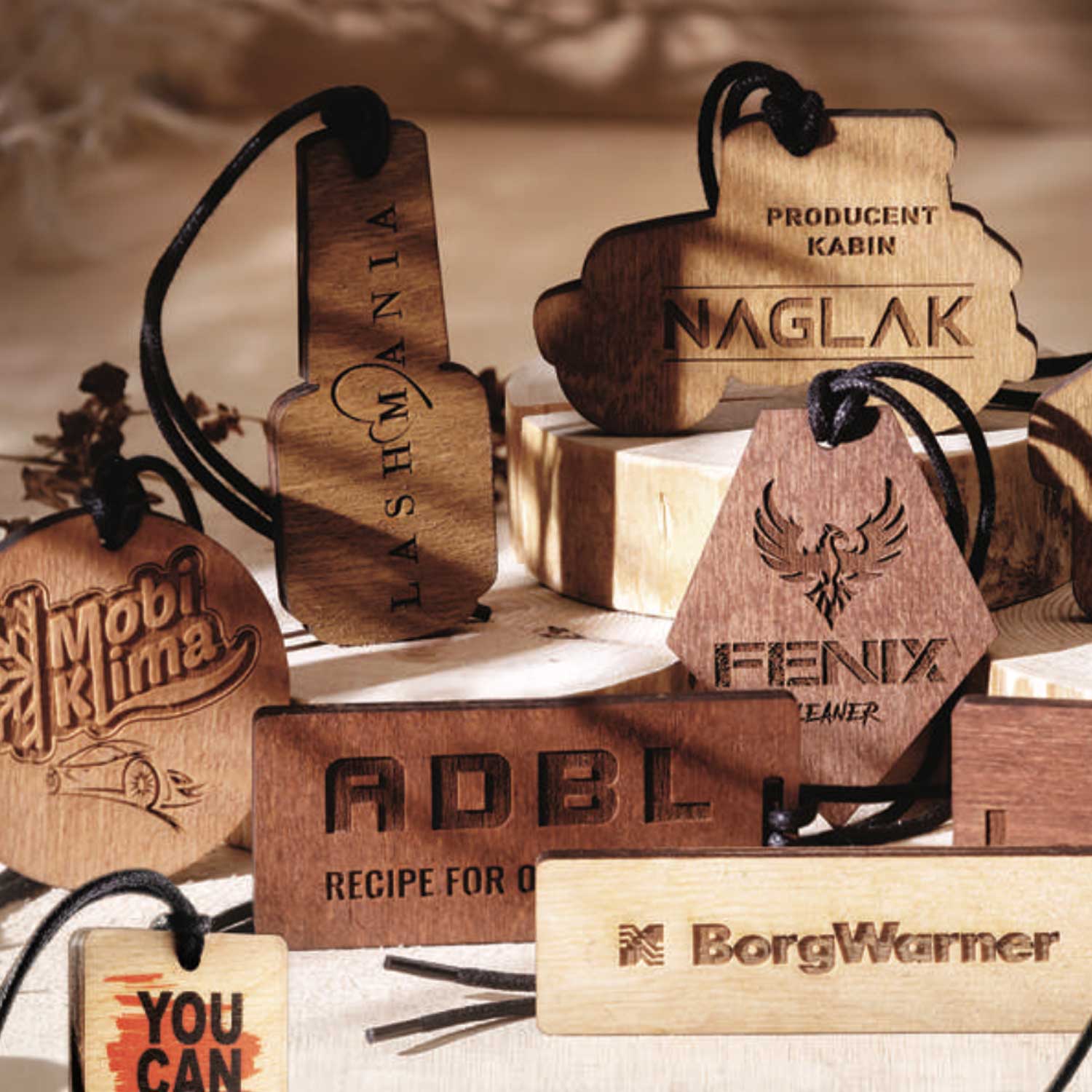 Tyylikäs auton ilmaraikastin omalla logolla kaiverrettuna. Anna lahjaksi raikkautta, joka muistuttaa autoilijaa sinusta päivittäin.