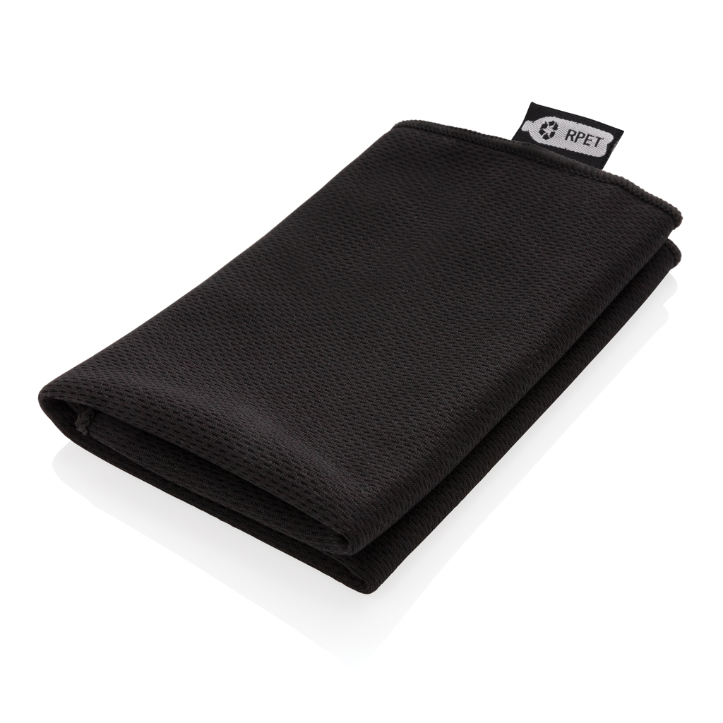 RPET urheilupyyhe RPET-pussissa. Pyyhe on valmistettu 50% kierrätetystä PET: sta ja 50% polyesteristä. Pussi on 90% valmistettu kierrätetystä PET: stä ja 10% PU: sta. Täydellinen urheilun ja muun intensiivisen toiminnan jälkeen. Uudelleenkäytettävä ja (käsin) pestävä. Pyyhekoko: 80 x 30 cm / 135 gsm.