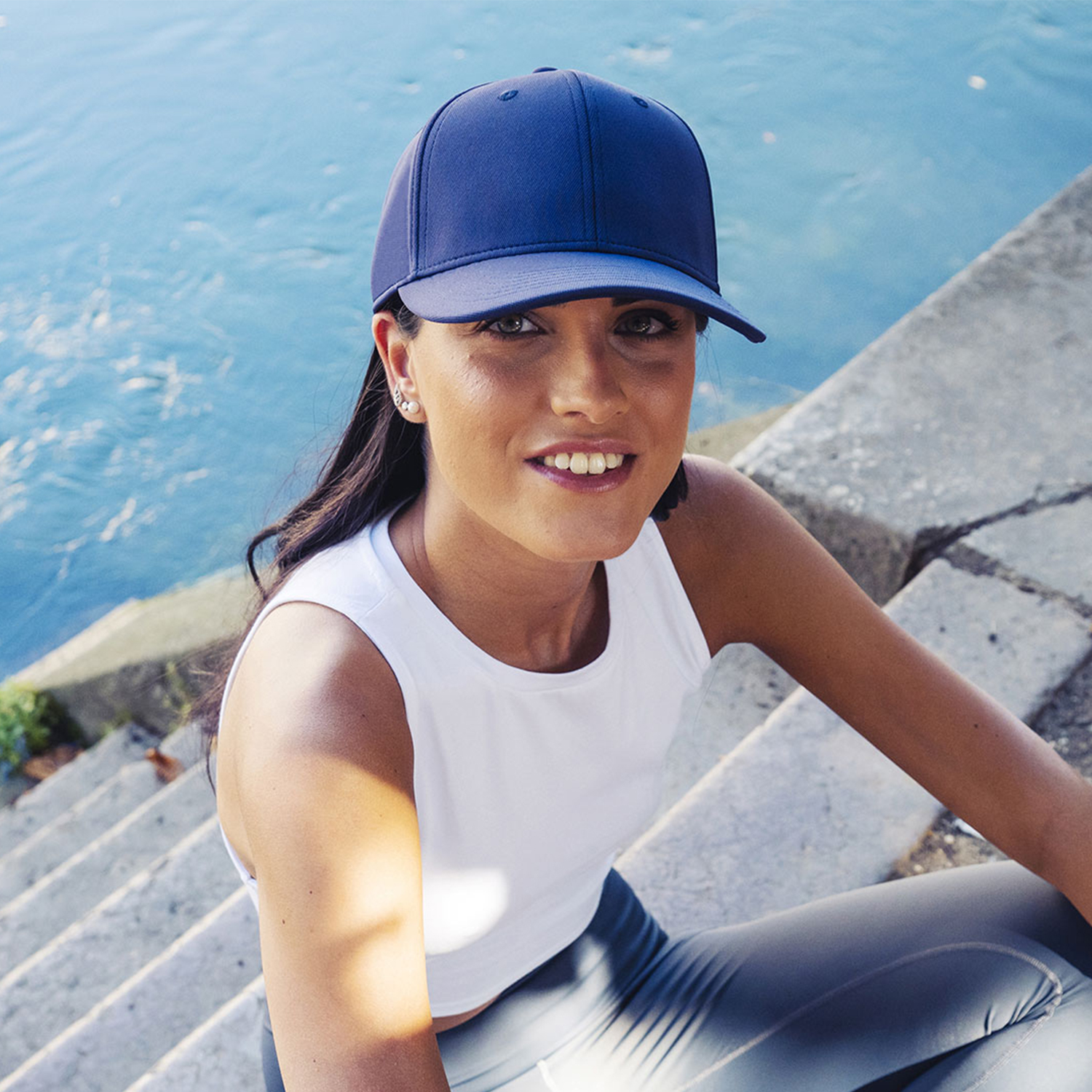 6-paneelinen lippis kierrätyspolyesterista, joka on värjätty ekologisesti dope dyeing -menetelmällä. Mid visor -lippa, laadukas tarrakiinnitys ja 6 tuuletusaukkoa.