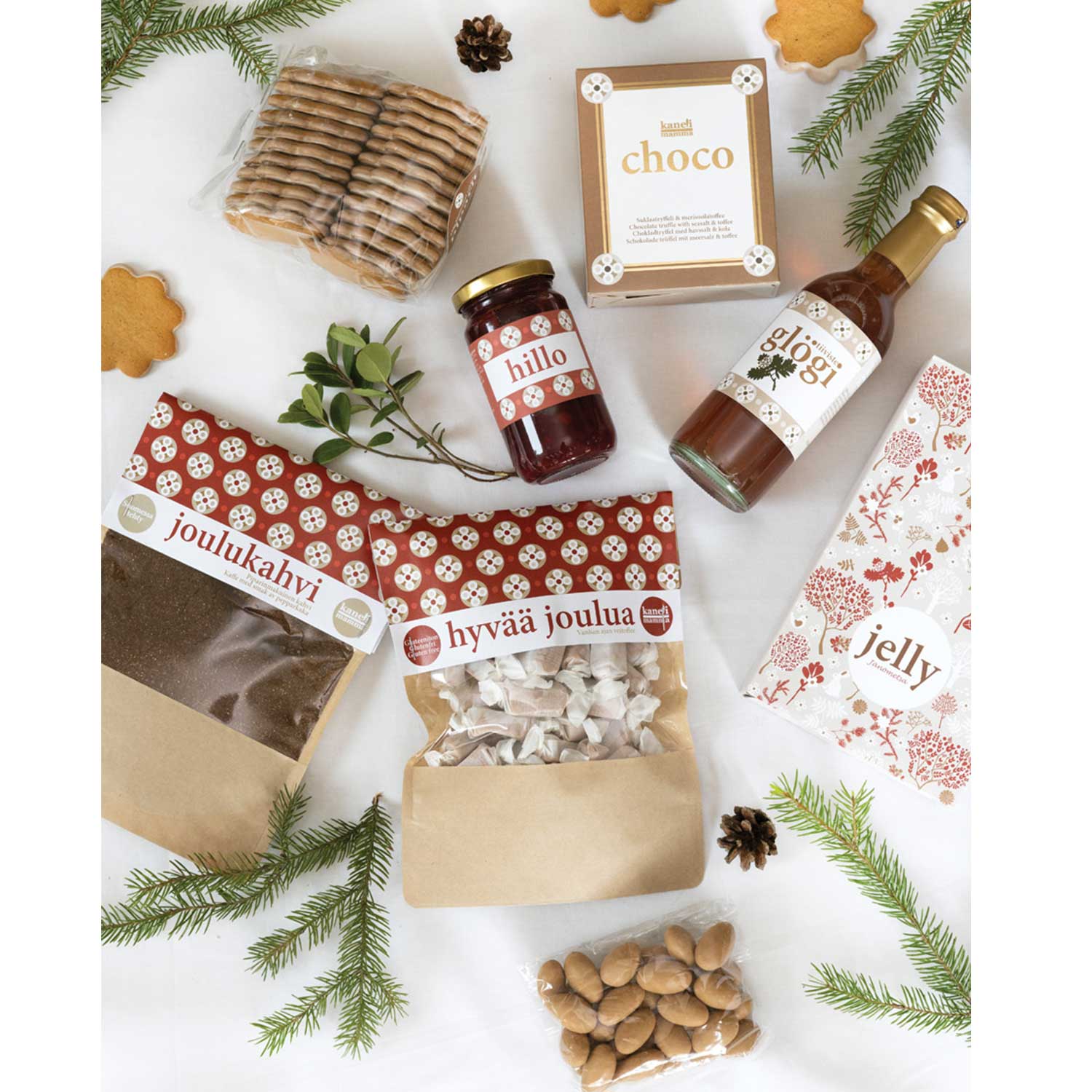 Kun joulu on -lahjasetti on täynnä mitä ihanimpia herkkuja jouluun. Lahjasetti sisältää kaiken tarvittavan: Kotimaiset suklaapiparit 250g Kotimainen puolukka/kuusenkerkkä -hillo 190 ml... Lue lisää