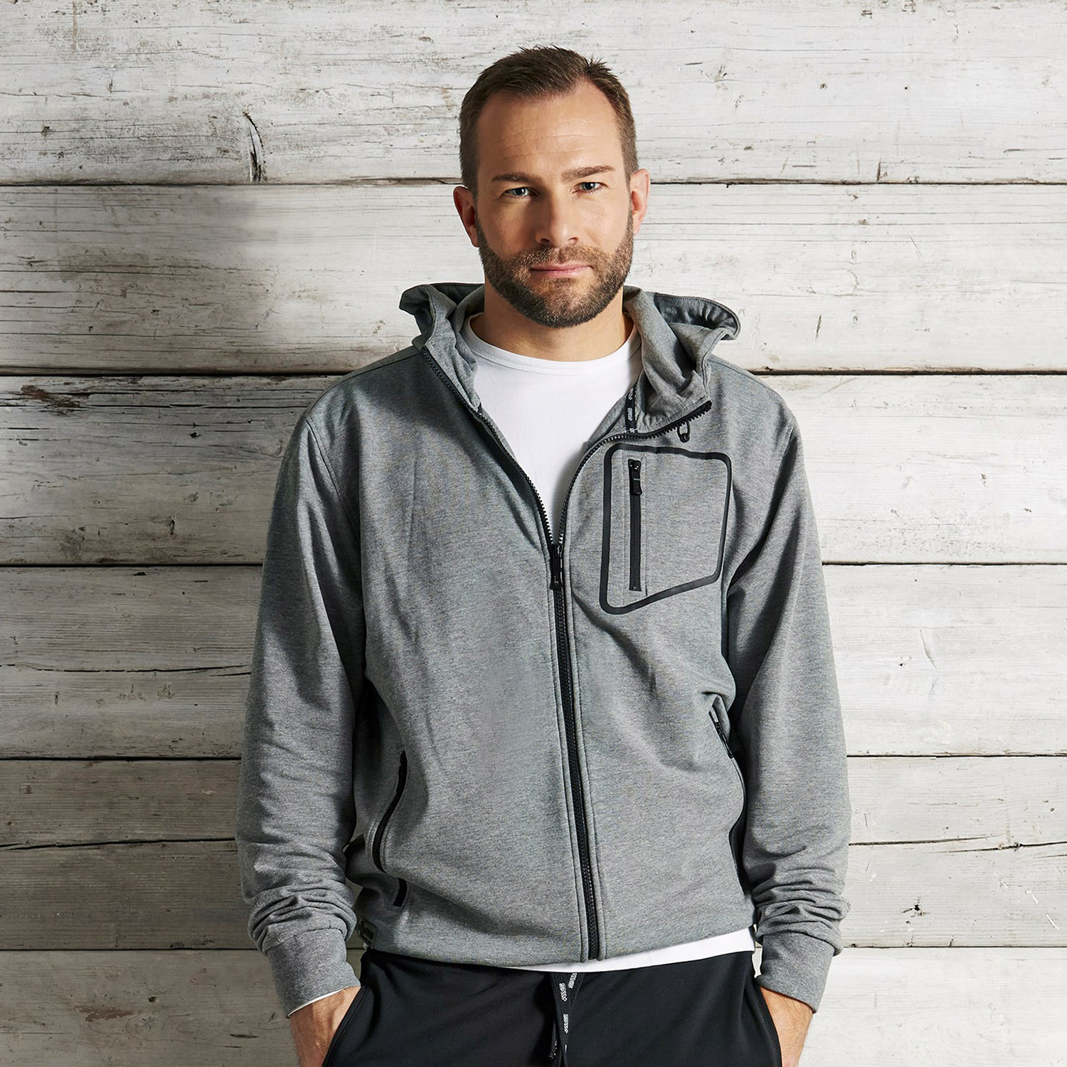 College-takki joustavaa laatua, jossa on vartalonmyötäinen istuvuus. Sivutaskut ja rintatasku tehost evärisellä vetoketjulla . Hupussa korkea kaulus ja kiristysnauha säädettävää istuvuutta...