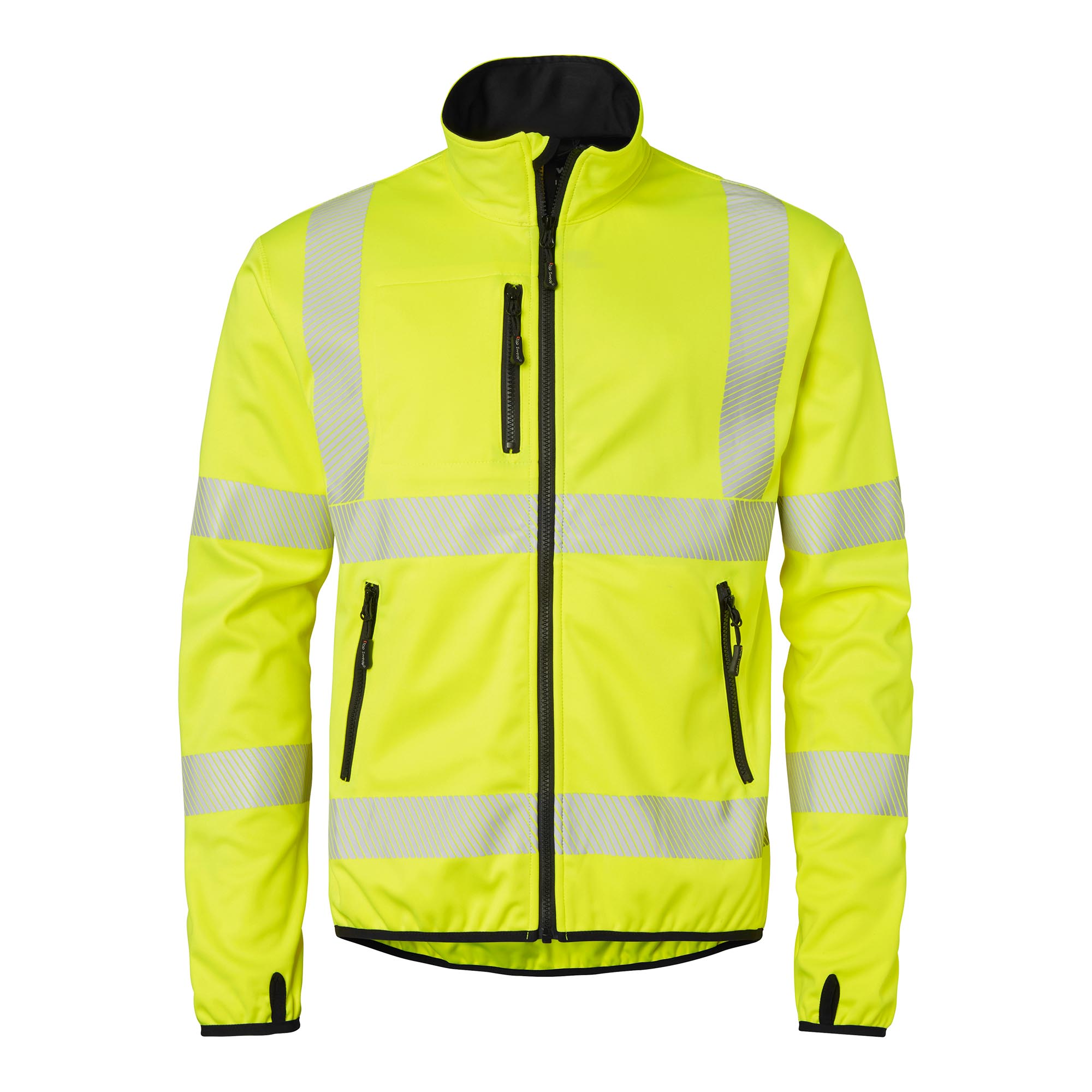 Softshell-takki, jossa on kokovetoketju ja leukasuoja. Rintatasku/puhelintasku, jossa on vetoketju. Kaksi vetoketjullista etutaskua. Hihansuiden resoreissa peukalonreiät. Joustava helma. EN ISO 20471 luokka 3.