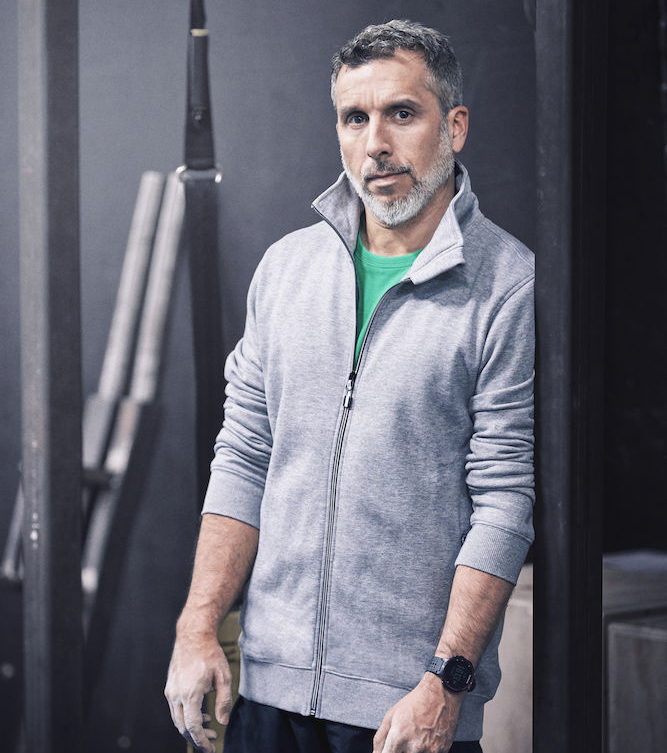 Printer collegesvetari, jossa joustava resori hihansuissa ja helmassa. Miesten mallissa on pystykaulus ja vetoketjutaskut.