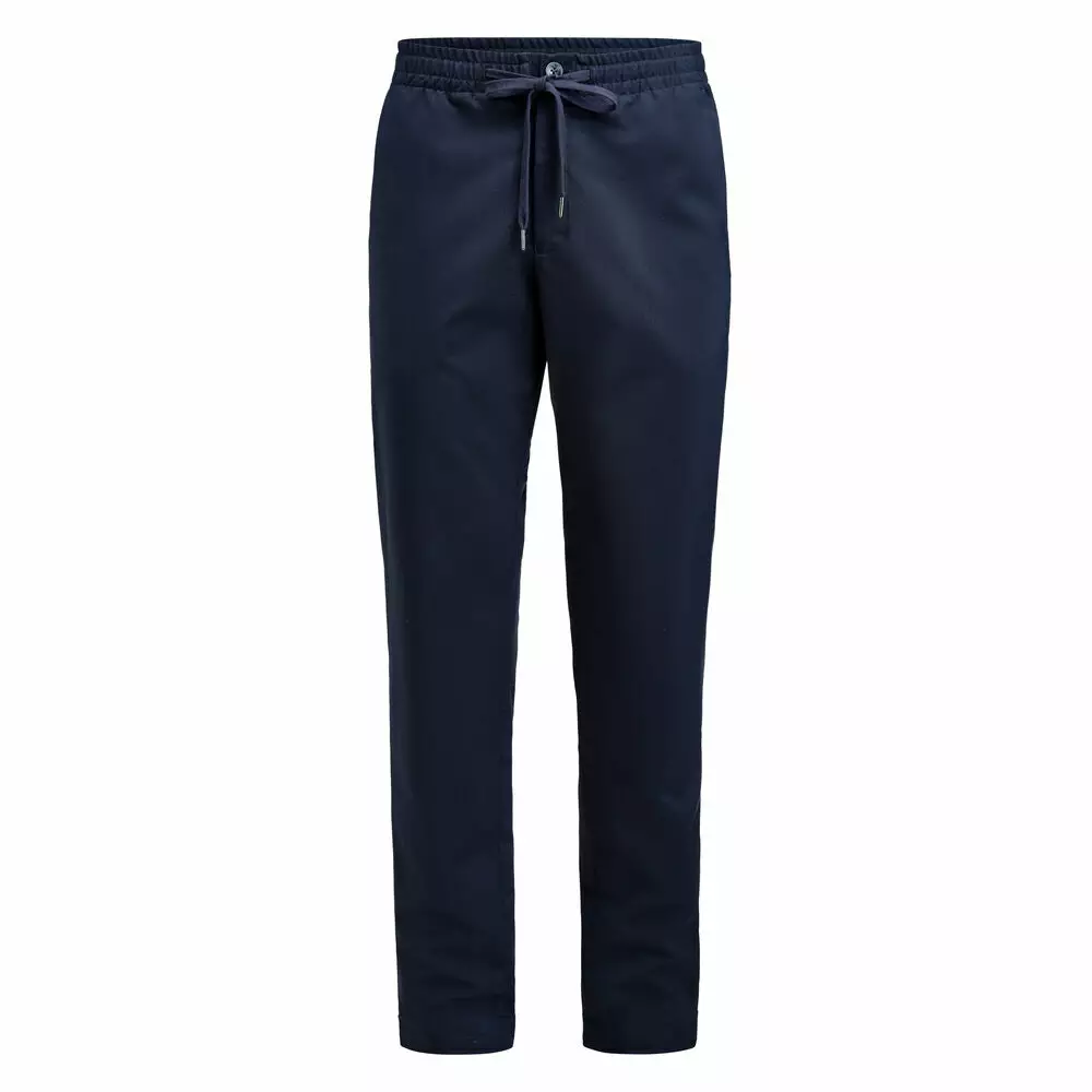 Modernit ja mukavat housut joustavalla vyötäröllä tuovat tyylikkään ja miellyttävän olon koko päiväksi. Yhdistä nämä housut trendikkään paitatakin kanssa luodaksesi huolettoman tyylikkään kokonaisuuden. Täydellinen valinta sekä klassisten että rentojen kenkien kanssa.52% puuvilla, 44% RPET, 4% Elastaani