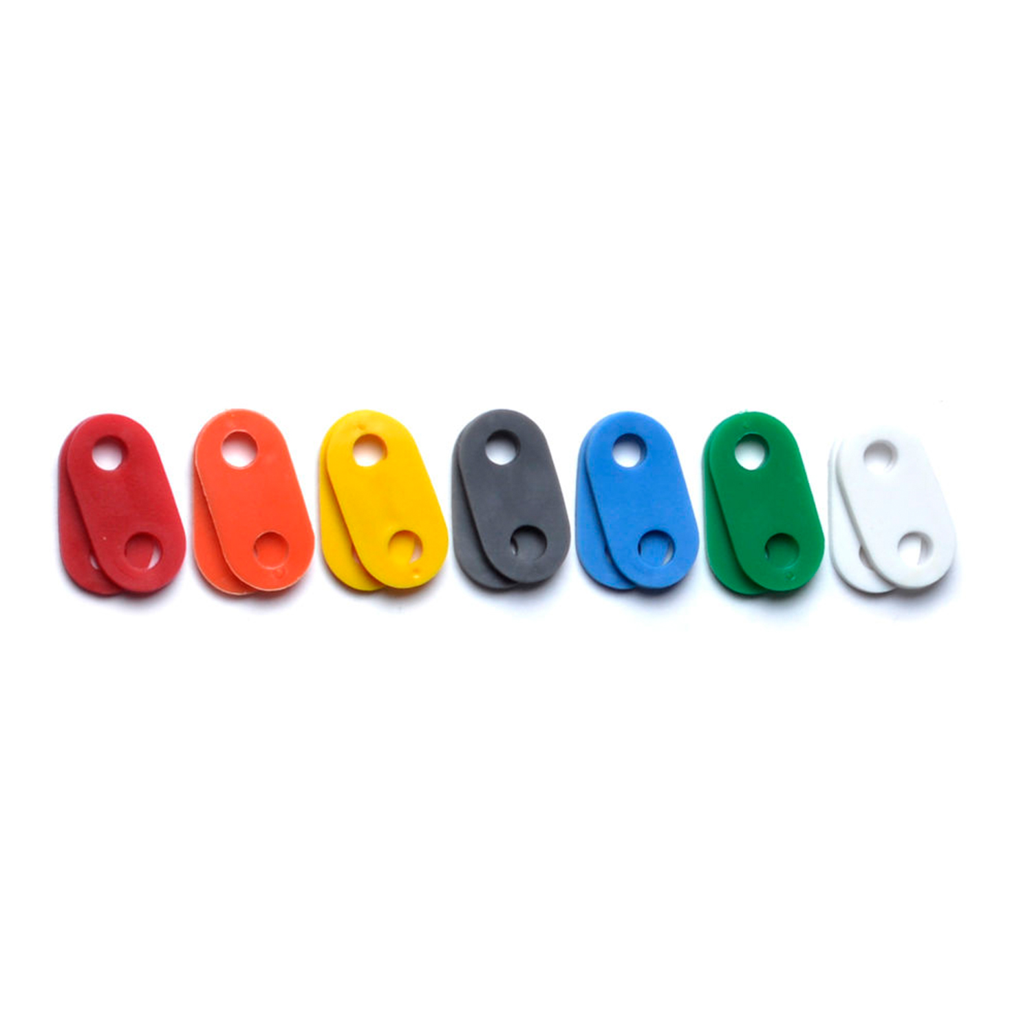 Printer-stopperit (2 kpl/pakkaus). Värikkäät hupparin kiristysnyörin stopperit saatavana 9 eri värissä. Personoi tuote yrityksesi värillä.
