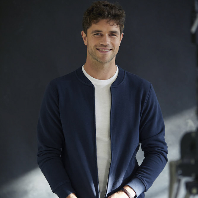 Laadukas luomupuuvillasta ja kierrätetystä polyesterisekoitteesta valmistettu collegetakki, jossa täyspitkä YKK-vetoketju patinoitua metallia.