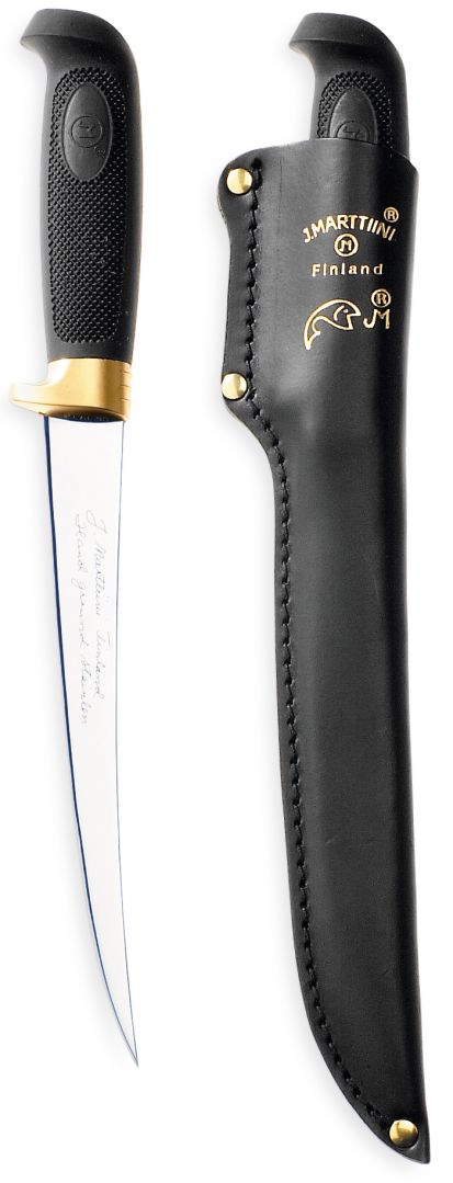 Huippuunsa hiotulla, terävällä ja notkealla ruostumattomasta kromiteräksestä valmistetulla terällä saat kauniita fileitä helposti. Tämä filetti on parhaimmillaan noin 2-3 kg:n painoisen kalan käsittelyssä. Myös monet muut keittiön askareet, kuten esim. tomaatin siivuttaminen, käy tällä veitsellä näppärästi. Musta nahkatuppi.