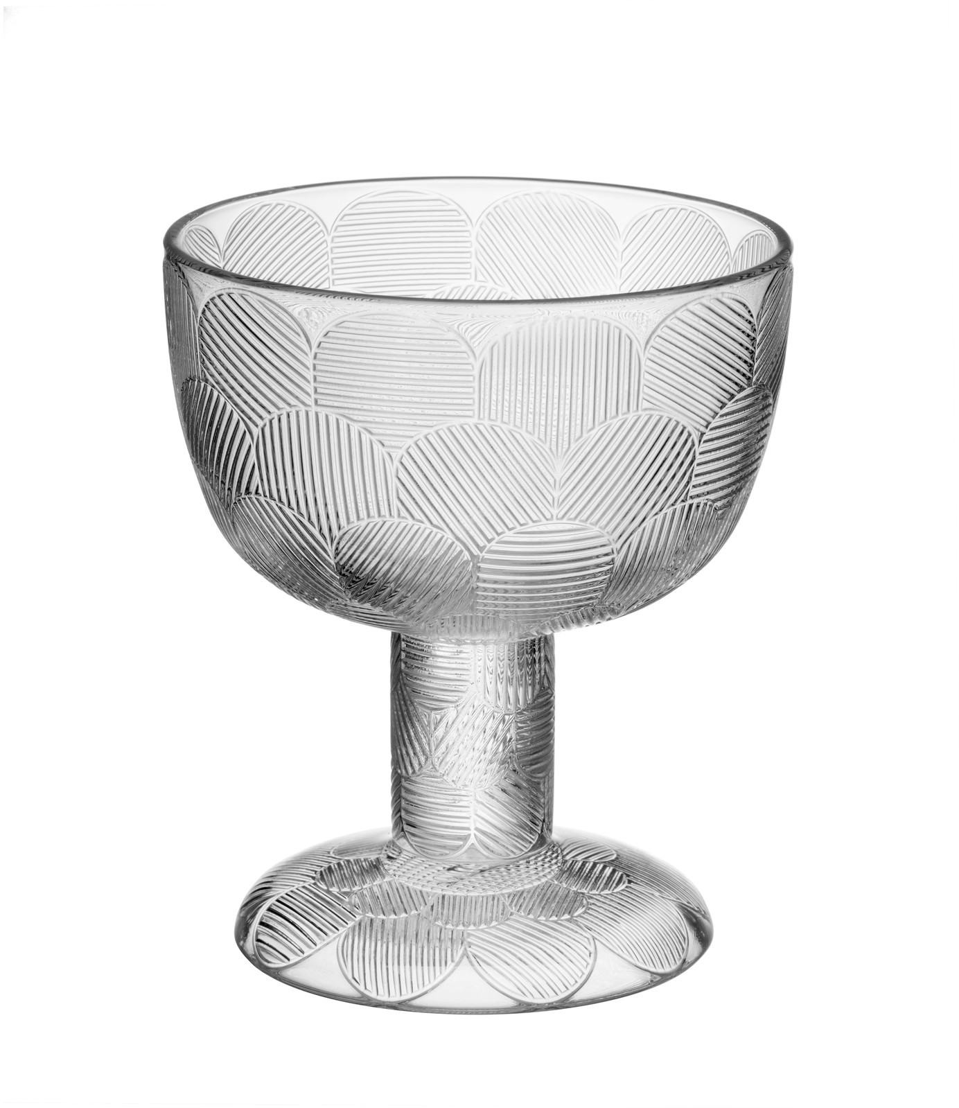 Muotoilija Heikki Orvolan suunnittelemasta ja uudelleen tuotantoon otetusta Miranda-sarjasta on saatavana uusia kokoja ja värisävyjä. Jalallisessa maljassa on levollinen, lehtimäinen kuviointi. Se heijastaa valoa kauniisti. Monikäyttöinen ja laadukas puristelasiesine on näyttävä yksityiskohta kaikissa kattauksissa. Miranda-kulho sopii naposteltavien ja jälkiruokien tarjoiluun. Kirkas lasi on pelkistetyn tyylikäs. Saatavana kuusi kaunista värisävyä. Yhdistele tyylikkääksi kokonaisuudeksi. Kerää yksittäisistä osista kokonainen sarja. Erinomainen lahja.
