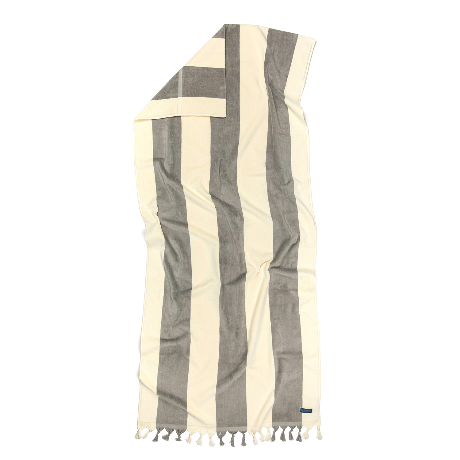 Ylellinen puuvillainen rantapyyhe, jonka toisella lyhyellä sivulla on koristetupsut ja toisella tasku aurinkotuolia varten. Aurinkotuoliin kiinnitettynä pyyhe pysyy hyvin paikoillaan. Kylpypyyhkeemme valmistetaan Intiassa 100-prosenttisesti luomuviljellystä puuvillasta, ja niiden paksuus on 450 g/m2. GOTS-sertifioitu.